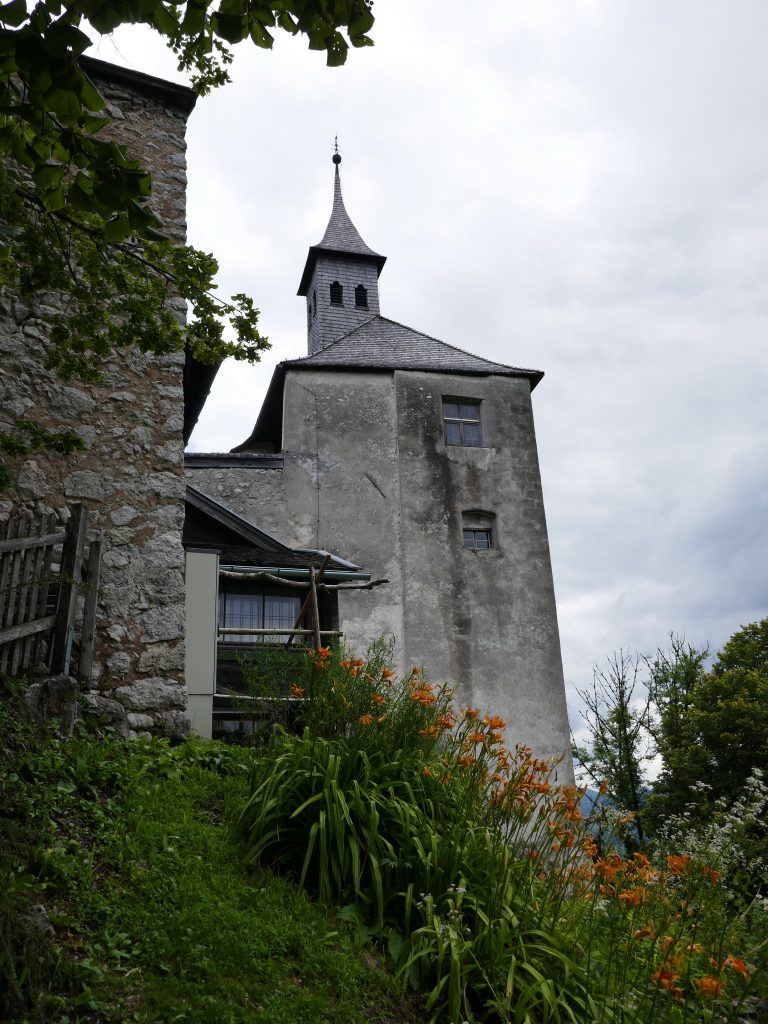 Rein in die Fahrzeuge und ab Richtung Berge. In Kiefersfelden rechts ab und gleich nach dem Ortsschild auf den (noch fast leeren) Parkplatz am Kieferbach. Ein paar regnerische Tropfen meinen, sie müssen uns begrüßen. Sie geben das Bemühen aber bald auf und wir steigen, neben einem kräftigen Wasserfall, über zahlreiche Stufen rauf zum Hechtsee. Der angekündigte Schwefelgeruch empfängt uns kurz vor dem See (Faulgase vom Seegrund, die mit dem abgeleiteten Wasser freigesetzt werden). Bald ist wieder frische Luft angesagt und der Weg, links am See entlang, bringt uns zum Großen Parkplatz beim Eingang zur Badeanstalt. Kurze Zeit später biegen wir ab und steigen durch den Wald kräftig aufwärts. Beim „Gut Aigen“ erreichen wir einen Fahrweg und bald darauf auch den Gasthof „Neuhaus“. Zunächst verzichten wir auf die Einkehr und „schnaufen“ über den Kreuzweg hinauf zum Gipfel des Thierbergs. Wir stoßen hier auf eine Wehrmauer, einen Bergfried und eine kleine Wallfahrtskapelle mit anschließender Einsiedlerwohnung. Nach eingehender Besichtigung von Kirche und Turm und Genuss des herrlichen Ausblicks auf Kufstein und das Inntal, zieht es uns zurück zum Gasthof, um Speis und Trank (wohlverdient) zu genießen.