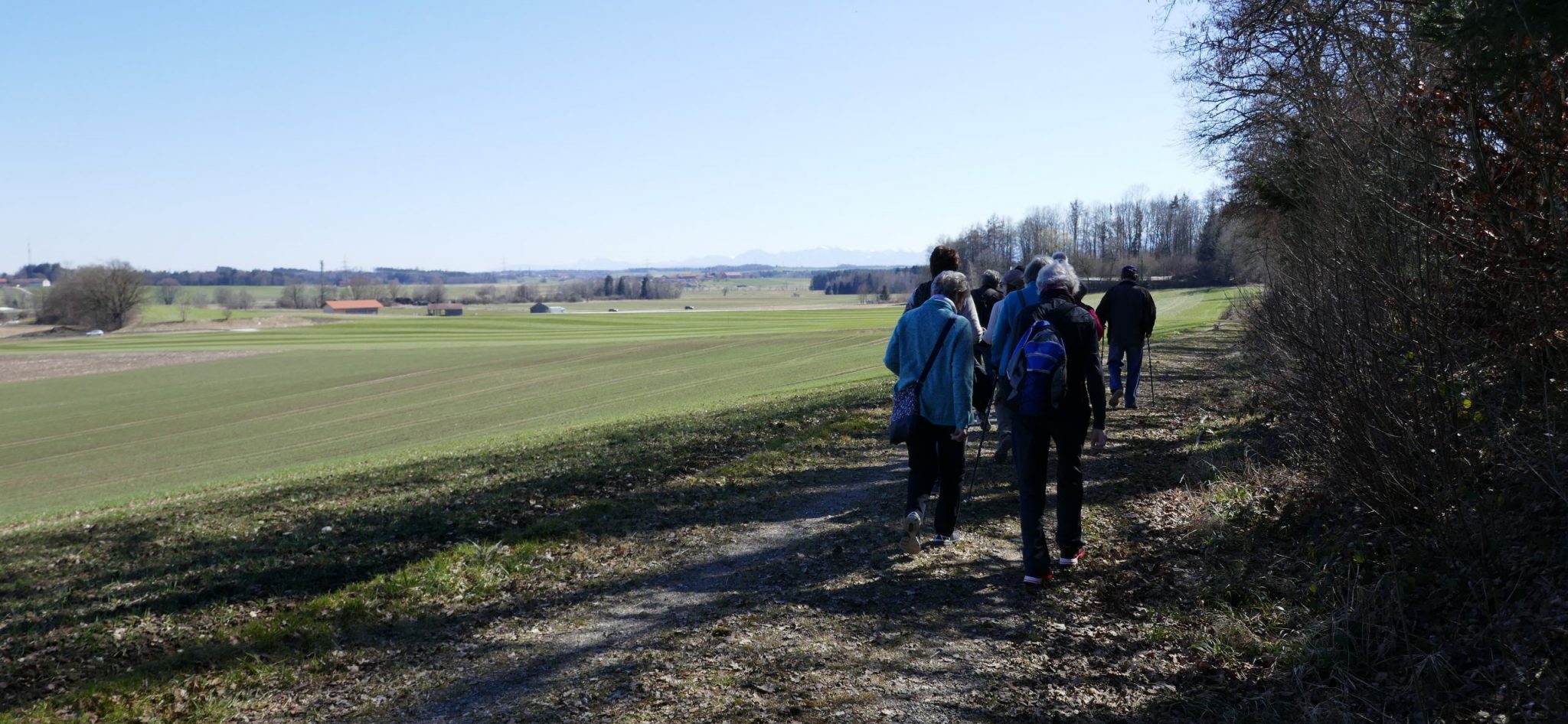 An der Linde, um 09.30 Uhr, starten wir wieder mit dem Gemeindebus und (bei 18 Personen) mit mehreren privaten-Pkw. In Bernau am Bahnhof parken wir unser Gefährte und orientieren uns an der/den Bernauer Achen. Sie/er begleitet uns eine ganze Weile, bis wir uns, nach dem Flußuferwechsel, in Richtung Berg aufmachen. Die vielbefahrene Verbindungsstraße von Bernau nach Grassau queren wir im Sauseschritt und suchen uns den ehemaligen Salinenweg, der uns entlang dem Rudersberg führt. Wir passieren noch das Cafe „Wastlbauerhof“ (ohne Kaffeepause!) und landen schließlich beim Wasserturm, mit prächtigem Blick auf den Chiemsee. Nach kurzer Rast geht es wieder abwärts, am Schauergraben entlang, zurück nach Bernau. Beim „Alten Wirt“ warten schon Schnitzel, Braten und Salat auf uns hungrige Wanderer. Nach gelungener Stärkung ist es nicht mehr weit zu unseren Fahrzeugen. „Gezwungenermaßen“ müssen wir auf der Heimfahrt noch einen Zwischenstopp im „Peissenhof“ einlegen, weil der Koffeinspiegel einfach irgendwann absinkt. Fazit: Wetter zunehmend freundlich, Stimmung und Essen sehr gut, Wanderer was willst du mehr!